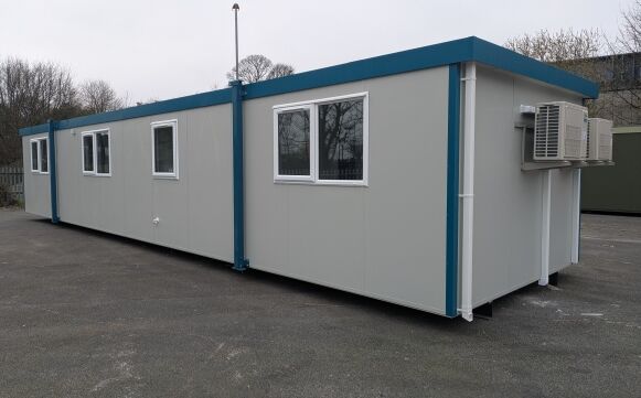 Our solution was to build 2No large cabins to stack on top of each other, these were 48' x 12' brand new plastisol Britannia cabins.