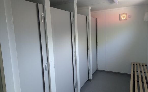 Across the two cabins, we incorporated 2 offices, a canteen, 4 showers and a drying room.