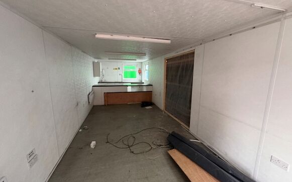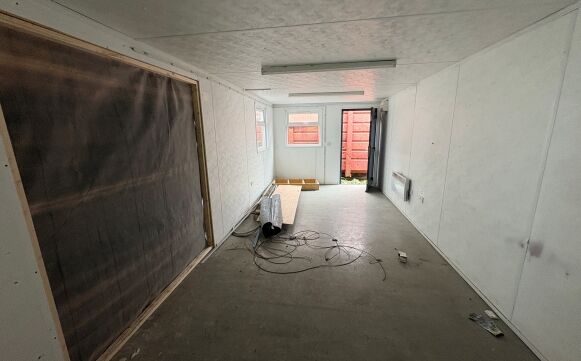 Unit to be reboarded to one long side or external door to be fitted - one currently on the gable end.