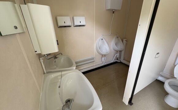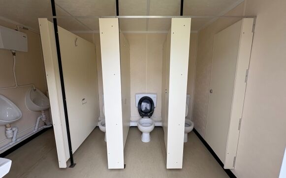 Male end comprises of 3 cubicles, urinals and wash hand basins.