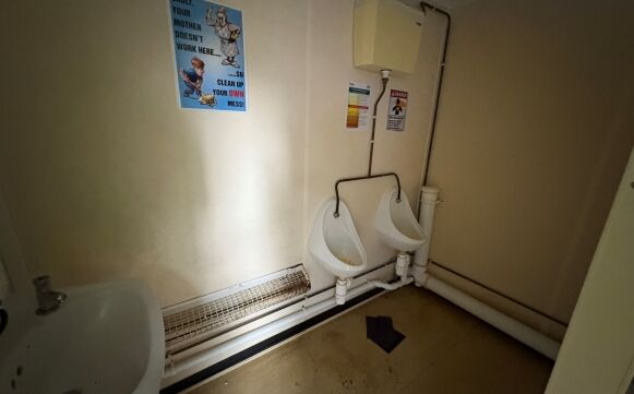 3 male cubicles and 2 urinals with hand wash basins.