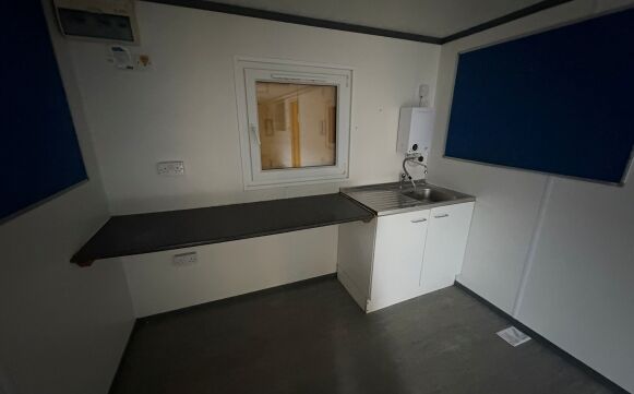 Canteen towards one end that includes for a sink, worktop and water heater.