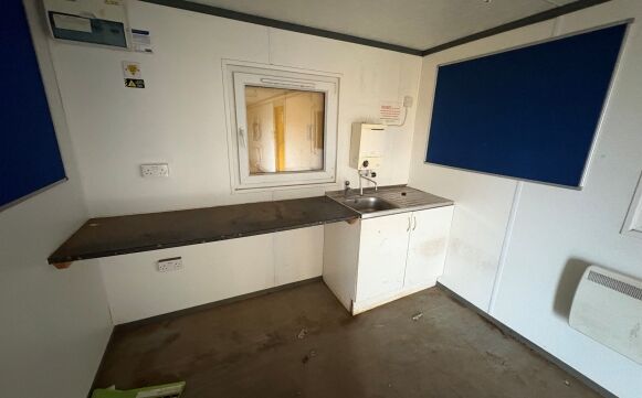 Canteen towards one end that includes for a sink, worktop and water heater.