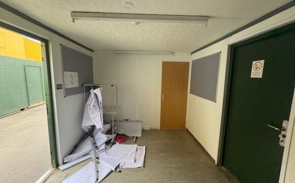Canteen towards one end that includes for a sink, worktop and water heater.