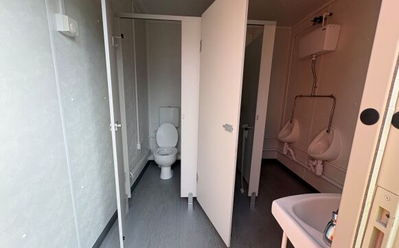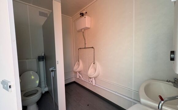 Male end comprises of 2 cubicles, urinals and wash hand basins.