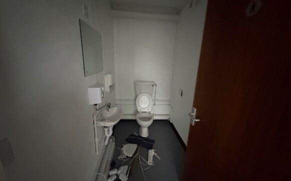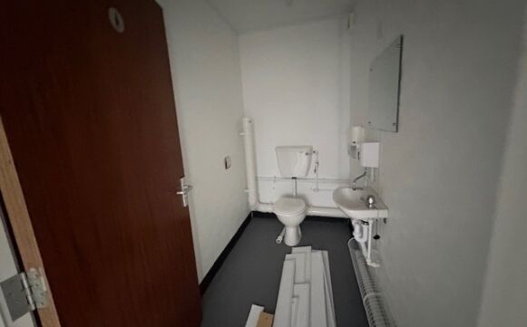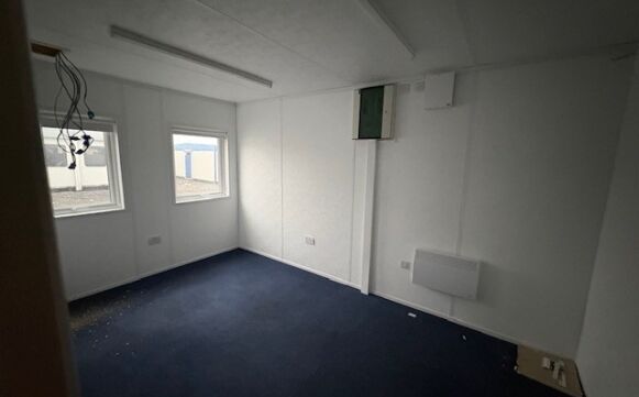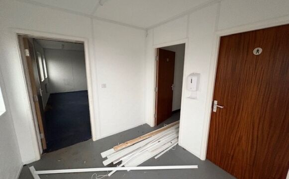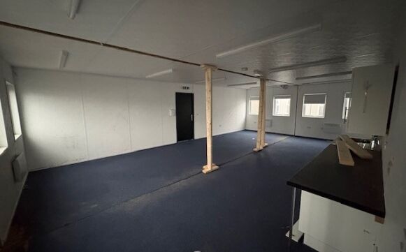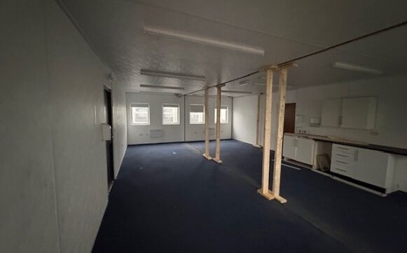 Open office area with canteen (or classroom) with a smaller meeting room.