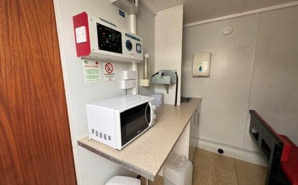 Canteen space includes for a sink, worktop and water heater - additional drying room space.