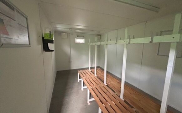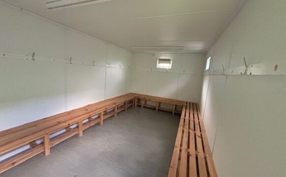 Drying room layout - with benches and coat hooks.